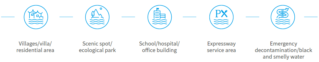 Type ICWT-A product is mainly used in the area with high requirements for effluent quality or sensitive to water environment and A/O-MBR process is adopted. The product is a fusion of two second prizes of National Science And Technology Progress Award, including “Membrane integrated wastewater deep purification technology”and“New technology of low energy consumption MBR wastewater recycling”. The main water quality indexes can meet Level IV (TN ≤ 15mg/L) of Environmental Quality Standard for Surface Water (GB3838-2002), Level I-A of Discharge Standard of Pollutants for Municipal Wastewater Treatment Plant (GB18918-2002) and the Reuse of Urban Recycling Water-Water Quality Standard for Scenic Environment Use (GB18921-2002).