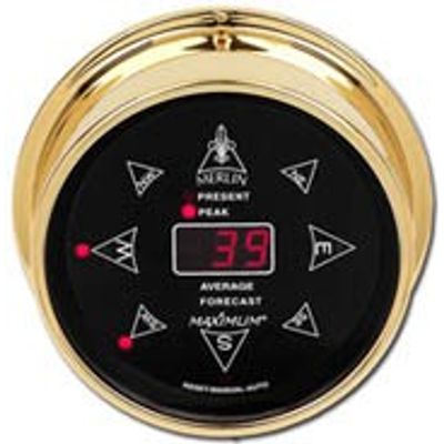 Merlin Digital Wind Speed and Wind Direction Set with 6.5` Solid Brass Case. A digital instrument with a `brain` to record changes and trends as well as present wind conditions. Readings are given in four modes: Present displays existing wind conditions. Peak gives speed and direction of highest gust since last reset. Average reveals average wind speed and direction since last reset. Forecast compares most recent 12-minute average with previous 12 minutes.