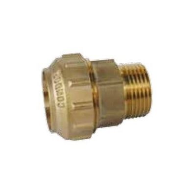 For connecting or repairing PE pipes. Range of sizes from DN20 to DN90. Made from forged brass under the UNE EN 12165 standard. Controlled in accordance with the UNE-EN 712, UNE-EN 713, UNE-EN 715 and UNE-EN 911 standards. Operating pressure up to 25 bar (PN25). Gas threaded end (BSP) complying with the ISO228/1 standard, Operating temperature: -20º C to + 100º C.