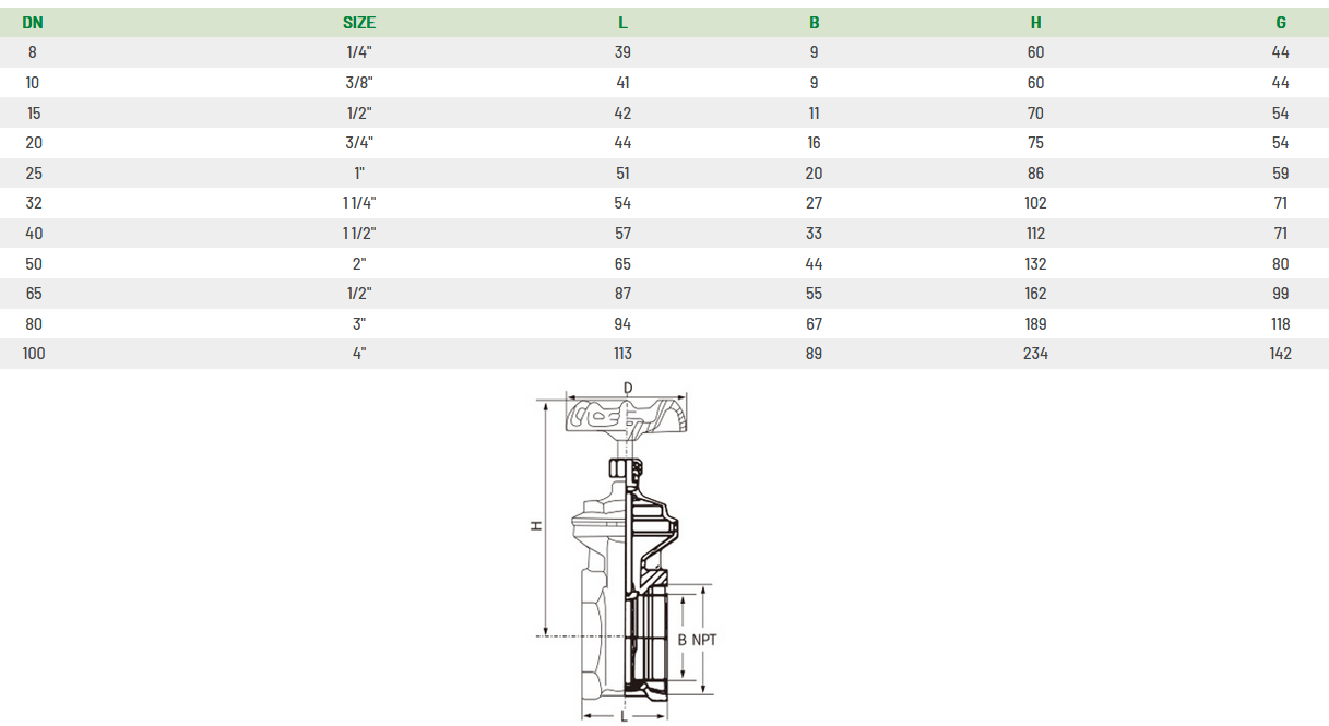 Yuanda - Model Z15W-16T (Imperial) -Brass Gate Valve