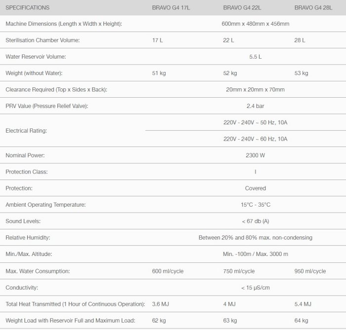 - Offering enough capacity to meet the needs of any size practice, the BRAVO G4 comes in 17L, 22L, and 28L chamber sizes.