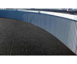 Interlocking panels provide a protective layer from foot traffic, hydraulic impact, and UV degradation on top of trickling filter media.