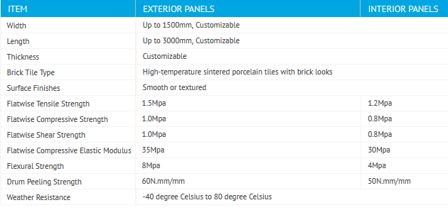 Typical size of the brick cladding panels is 1220*2440mm, or 1500*3000mm and is customizable. Pre-fabrication is also available according to production drawings. The panels can be cut-to-size and assembly with returns to suit every elevation precisely.