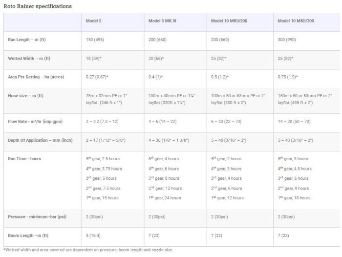 - Three models are available (Model 2, 5 and 10) giving runs from 150 to 300 metres and widths between runs of 18 metres to 27 metres.