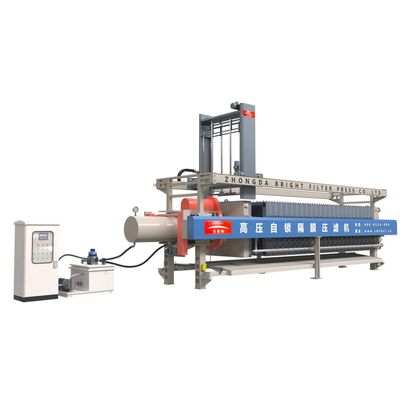 The membrane filter chamber are formed by mixed membrane filter plates and chamber filter plates,the feeding pump feed the sludge into the chamber and through the filtration of filter cloth,the solid and liquid are separeted.when the soilds formed the filter cake,then blow the air into the membrane to further dry the filter cake. The membrane filter press is specially designed for viscous and glutinous material and who has higher requirements about moisture.
