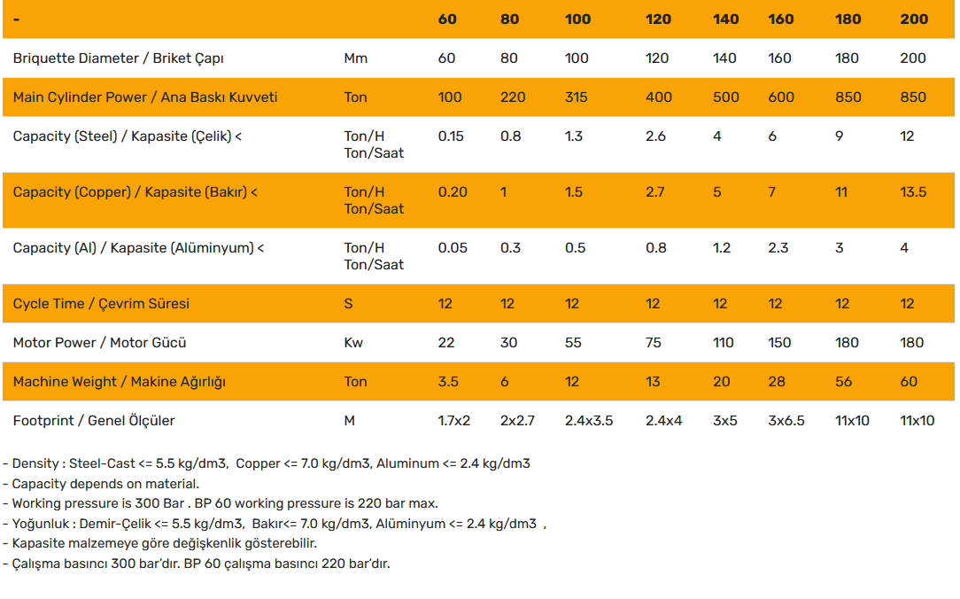 High capacity range. Crushing , centrifuge and screen solutions as an automated line. Steel, cast iron, aluminum, stainless, brass,zinc, lead, tyre wires, magnesium, bronze , titanium, slag , sludge , dross etc. avaliable to briquette.