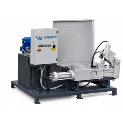 - mechanical press with compression head and extruder, mounted beside the mini silo;