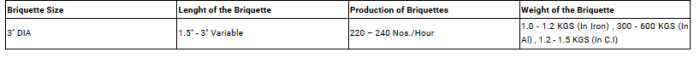 We are providing a variety of supreme quality Briquetting Press 3 Dia that includes different models. The offered unit used widely for cutting copper iron & aluminum covers. In addition to this, the offered product is eminent in stripping & pulling out the wires as it is excellent performance efficient, cost effective, simple to operate and more. In addition to this, Briquetting Press 3 Dia is strong in construction that provides optimum service, requires low maintenance as well as wear and tear proof. Clients’ can avail this item in different sizes, shapes and colors as per to the requirement.