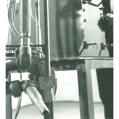 The Bristol M-7 Cleaner uses a high-pressure stream of water, slurry or other solvent to automatically clean tanks, reservoirs, or similar difficult to reach areas. On command from the program control, the nozzle directs a concentrated jet stream in a pre-set pattern to cut, dissolve and flush deposits out of the tank discharge or drain port. It handles up to 250 gallons per minute at pressures up to 250 p.s.i., removing gypsum, clay, calcium carbonate, acid crystal, or similar precipitates without disturbing the tank or its lining. In addition, the M-7 Cleaner can help you recover valuable acids, fats, oils or other materials left in tanks. Empty weights of transport cars can be reduced, saving on return charges.