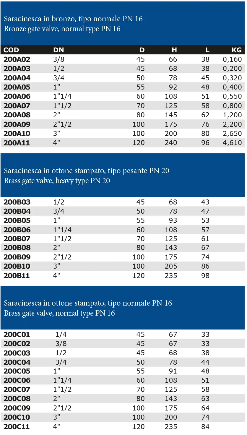 Rubinetterie Paracchini - Model 200 - PN 16/20 -Bronze/Brass Gate Valve