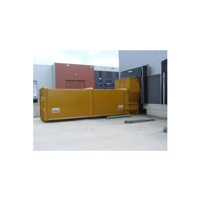 Motor rating 15 kW. Extension hopper for ramp filling. Electric central lubrication system. Couples to BRUNS compactor container with turnbuckles. Cover over feed chute.