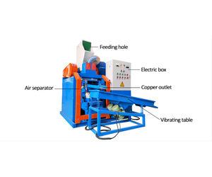 - Copper and plastic are separated again by small vibrating table to obtain pure copper and pure plastic.