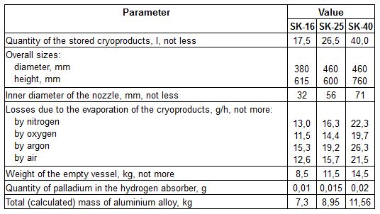 Cryogenic vessels SK-16, SK-25, SK-40 (See Figure attached) are applied for the storage and transportation of cryoproducts: nitrogen, oxygen and air.