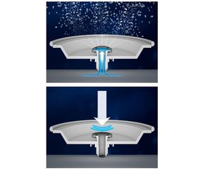 - A non-return valve, separate from the membrane, gives extra safety preventing the waste water from re-entering;