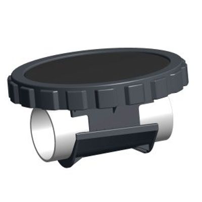 The Universal Bubble Diffuser Mounts (UDM) for fine bubble or coarse bubble disc diffusers is designed to accept a 3/4-inch NPT diffuser connection. The UDM is engineered for use with 2.4-inch through 8.6-inch O.D. plastic (PVC) or metal pipe. UDM is available in both vinyl & rubber materials of construction. Vinyl UDM (illustrated in the picture) allows for gluing to either PVC or ABS piping. Rubber cannot be glued. The UDM is to be used for mounting diffusers on the top of bottom of the lateral and is not recommended for sidewall mount of diffuser units.