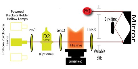- 3 hollow cathode lamps