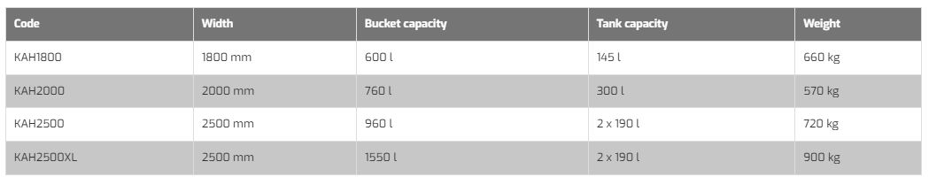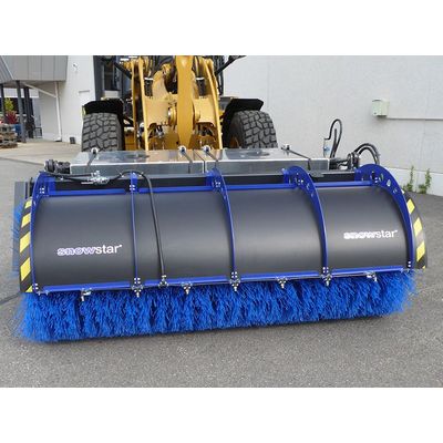 Standard accesories: Irrigation system, 700mm brush lamellas, bolt fitting, flow regulating valve, bolt Hardox 500 lip plate, brush height adjustment, brush roller flotation, 2-hose system and hose fittings. Accessories: Flotation system, side brush, turning equipment RC2000 and rotation direction selector valve. All SnowStar equipment include an interchangeable joiner plate.