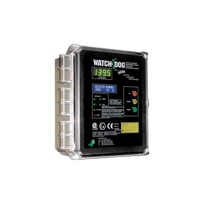 The Watchdog™ Elite is a microprocessor controlled unit with combined belt speed, belt alignment, bearing temperature, pulley alignment and plugged condition monitoring for bucket elevators and conveyors. An LCD screen displays machine status messages (available in four different languages) and a super-bright LED display shows belt speed. Calibration and set-up parameters are accessed via a password and front panel touch buttons.