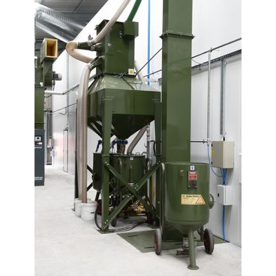 Hodge Clemco’s Belt and Bucket Elevator System is a heavy duty grit recycling unit, coupled to an abrasive separator which is designed to continuously remove large amounts of contamination. The heavy-duty nature of this system enables multiple operators to run from one unit. The system can be operated with a simple sweep in floor hopper or to increase production, can be coupled to a under-floor scraper or screw system. The modular nature of the design enables the system to fit in most site conditions and requires minimal foundation work.