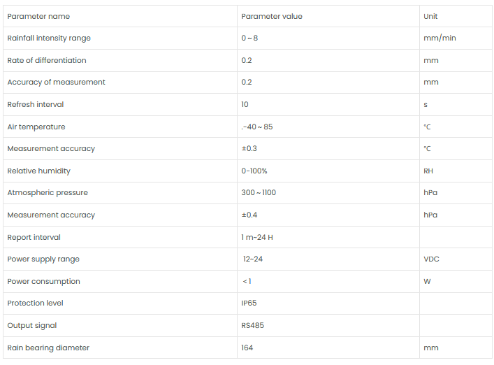 Good linearity, long transmission distance, strong anti-interference ability. The rain-bearing mouth is made of ABS engineeering plastic injection molding, with high smoothness and small errors caused by stagnant water.