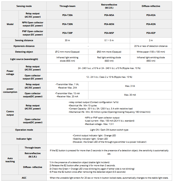 Hanyoung - Model PEA Series -Built-in Power Supply / Amplifier Built-in Photo Sensor