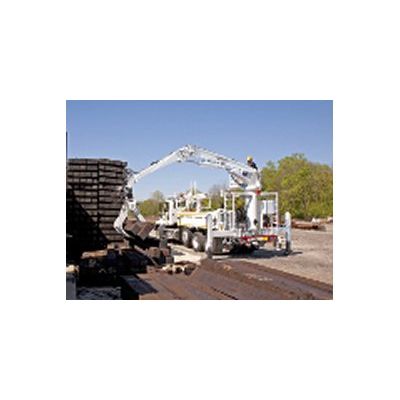 The Model 1010-TM Truck Mounted Material Handler is designed for railroad maintenance work, curb-side pick-up of white goods, garbage, woody debris, etc.These units evolved with input from several major railroads to not only perform but to also incorporate a number of safety features. This loader is offered with either A-frame styled stabilizers or with out and down type stabilizers. The out and down stabilizers give operators more flexibility to find firm footing on varying surfaces, as each stabilizer is completely independent of one another. By extending beyond the ties altogether, they prevent possible tie damage.