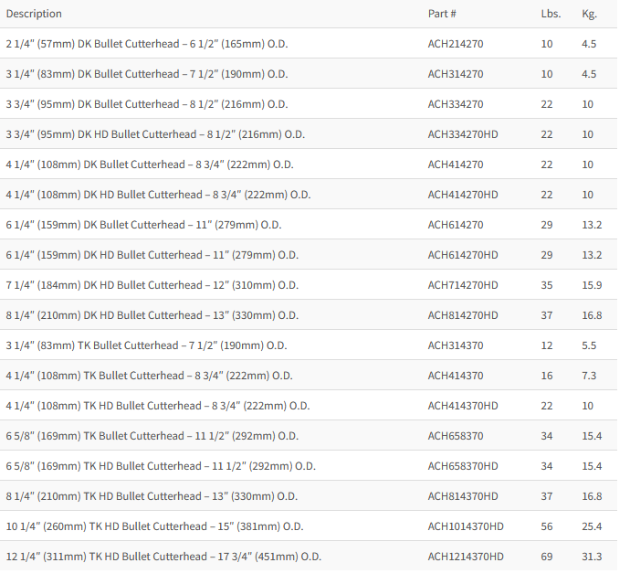 Our Bullet Cutterhead features carbide-tipped Bullet Cutters. Rated to cut up to 10,000 p.s.i. rock, these cutters create a ripping, gouging effect, best suited for medium soft to hard formations such as hard clay, sandstone, shale, and limestone.