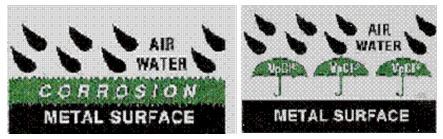 Cortec VpCIs bond with metal surfaces to form a protective `Molecular Umbrella` sealing out air and moisture that cause rust and corrosion.