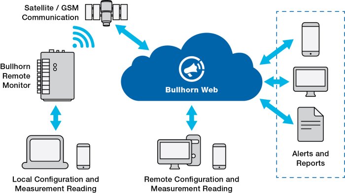 - Poll, reconfigure, modify reporting schedules, set alarm thresholds and update firmware over-the-air. Communication to the RMU is queued in Bullhorn Web and is sent the next time the unit wakes up to transmit