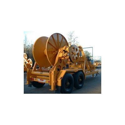 The machine design incorporates a pivoting bullwheel arrangement which automatically aligns the bullwheel with the point on the reel from which the conductor is being payed off. During the pulling mode the operator controls the bullwheel movement to levelwind the pulled cable onto the storage reel.