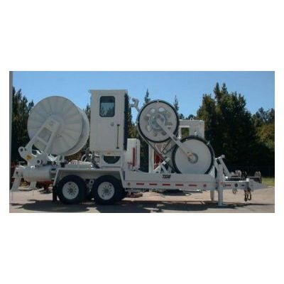 TSE`s unique hydraulic system allows the operator to preset the maximum pulling tension and provides infinite linespeed and linepull control. The machine design incorporates a pivoting bullwheel arrangement which automatically aligns the bullwheel with the point on the reel from which the conductor is being payed off.
