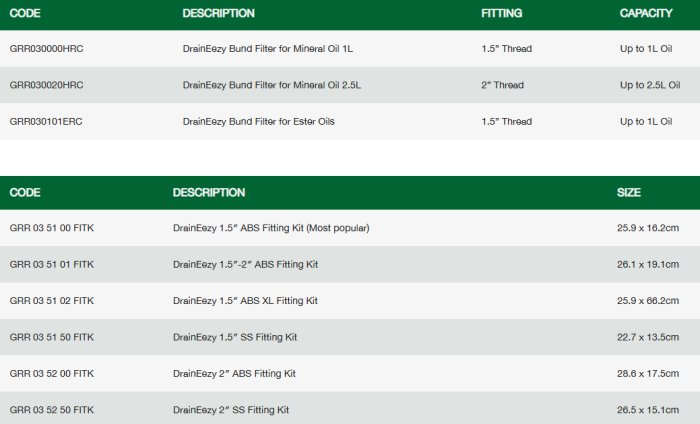 Our standard bund filter is for use with a range of hydrocarbons including mineral transformer oil, engine oil, petrol and diesel. We also have a separate filter for use with ester oils, specifically Midel 7131 synthetic ester oil and FR3 natural ester fluid.