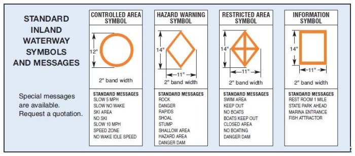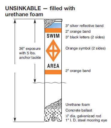 Features: Easy reconditioning of weather-worn buoys with excellent adhesion of restoration materials. See page 18. 9" diameter, white, ABS plastic exterior. Will not rust, chip or peel. Ultraviolet inhibited. Completely urethane foam filled. Virtually unsinkable. 3"-wide reflective band at top provides excellent nighttime visibility. Self-righting without tackle. Recessed cap allows buoy to stand upright. Heavy steel galvanized anchoring eye cast in an internal concrete ballast. Includes choice of standard symbols and messages.