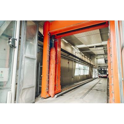 The underbody wash system consists of a moving trolley with nozzles, running in a guiding framework.