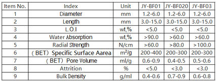 JY-BF type products have the characteristics of high compressive strength, low abrasion, adjustable size, pore structure, and bulk density, etc. All indicators can be adjusted according to requirements. It is widely used in the fields of adsorbent, hydrodesulfurization catalyst carrier, hydrodenitrogenation catalyst carrier, CO sulfur tolerant shift catalyst carrier, etc.