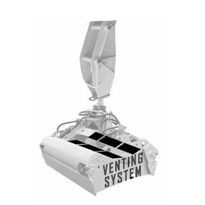 The Venting System consists of grated plates on the upper portion of the enclosed bucket which is then covered with rubber flaps. It also includes an open center design. The main purpose of the Venting System is to reduce the spread of contaminants, decrease time per bucket cycle, and cut costs related to unneccesary water treatment.