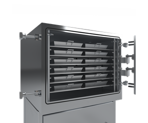 Our CakeStand™ vacuum tray dryer technology relies on a fully sealed vacuum chamber and direct heating shelves for optimum drying conditions and uniformity.