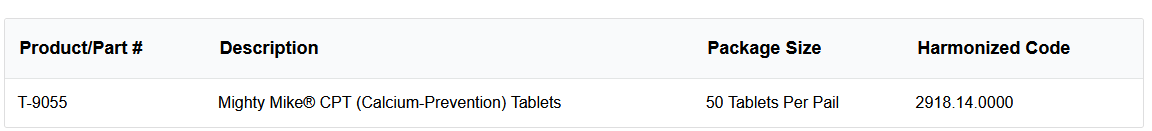 Scienco-FAST - Model Mighty Mike CPT -Calcium-Prevention Treatment Tablets