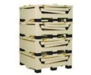 Secure, efficient stacking up to five high with interlocking lid and base. Contoured, channeled lid with smooth surfaces and rounded corners. Smooth interior for easy cleaning. Maximum volume capacity with form-fit liners that match the shape of the Citadel. Easy setup/collapse with one person. Containers collapse and stack with lids seperately.