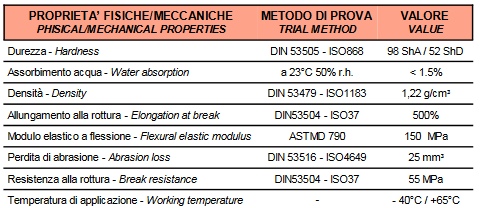- excellent resistance to cut and lubrication oil at low/medium temperature