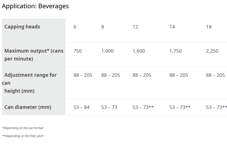 - The change-over from steel to aluminium cans is possible in only a short time thanks to the quickly adjustable quick-set seaming cam: The settings are reproducible and the change can be made in less than five minutes.