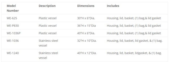 WEI - Model WE Series 625 & P830 -Canister Filters