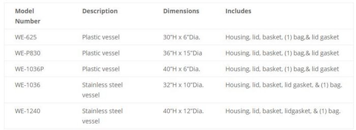 WEI - Model 1036 & 1240 WE Series -Canister Filters