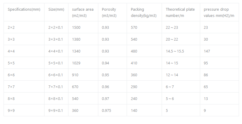 Also known as Cannon Packing, it consists of a number of thin stainless steel plates with small holes, but the punching does not remove the metal, but rather causes it to protrude into a rough surface, which facilitates the wetting of the metal surface by the liquid. Mainly used in the separation process of laboratory and small-batch, high purity products. Its strength is greater than other experimental fillers.