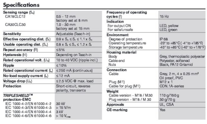 Carlo Gavazzi - Model C A , M1 8 , M3 0 , D C -Capacitive Thermoplastic Polyester Housing Proximity Sensors