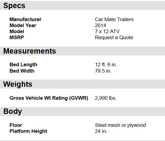- Car Mate - Model 7 x 12 ATV - Sport ...
