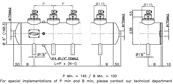 4” to 14` diameter Global Immersion Header Tanks fabricated with ½” to 4” integral or remote operated diaphragm pulse valves with either threaded or plain Blowtube Connection pipes. This design cleaning systems benefits not only a better cleaning operation but is easy to install and gives easy access to the diaphragm pulse valves for maintenance. Used on both bag and cartridge filters for dust extraction units.