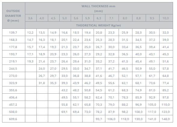 Carbon steel pipes can be suitable for several uses, they are particularly recommended when pipe laying or soil conditions require a product with high mechanical strength. They are available without coating or waterborne base painted. Connections are welding ends with or without collars or with M/F threaded couplings.
