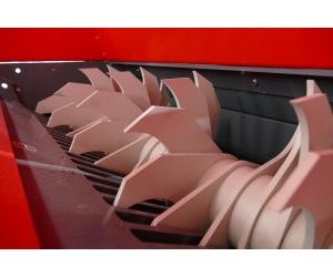 In general, the plant is designed for the highest possible operational reliability with long maintenance intervals. Chain drives are used for power transmission. This allows individual speeds to be selected for the feed rotor and the ripper rotor, matched to the material. Since this is a slow-running machine, the chains themselves have a long service life and low relubrication requirements. A PLC control system with automatic reversing and shutdown also protects the shredder from damage caused by overloading or solid particles in the material. The EKZ is available in various designs for integration into the process line. For example, with an attached feed table as a floor-mounted unit for manual feeding or as a vertical version for installation above press systems or in discharge chutes. The shredder can also be individually connected to the downstream transport route, for example by means of control parameters or level measurements.