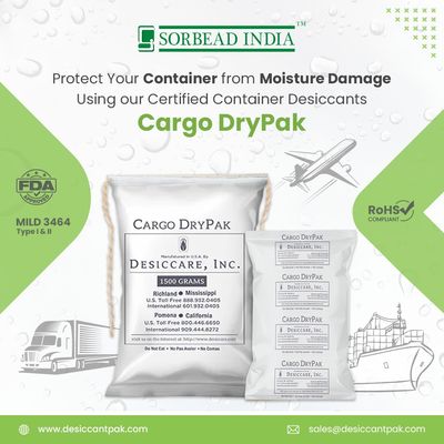 Desiccants are the saviours in the packaging and shipping industry. A shipping journey that could last for days can cause condensation inside the containers and spoil the products. Merchandise, goods and commodities that are sensitive against moisture require effective protection and care. This is where Cargo Dry Pak, an exclusively formulated desiccant comes into play. Cargo dry pak is specially designed for ocean, truck, rail & air shipping containers in keeping the packages items humid-free.